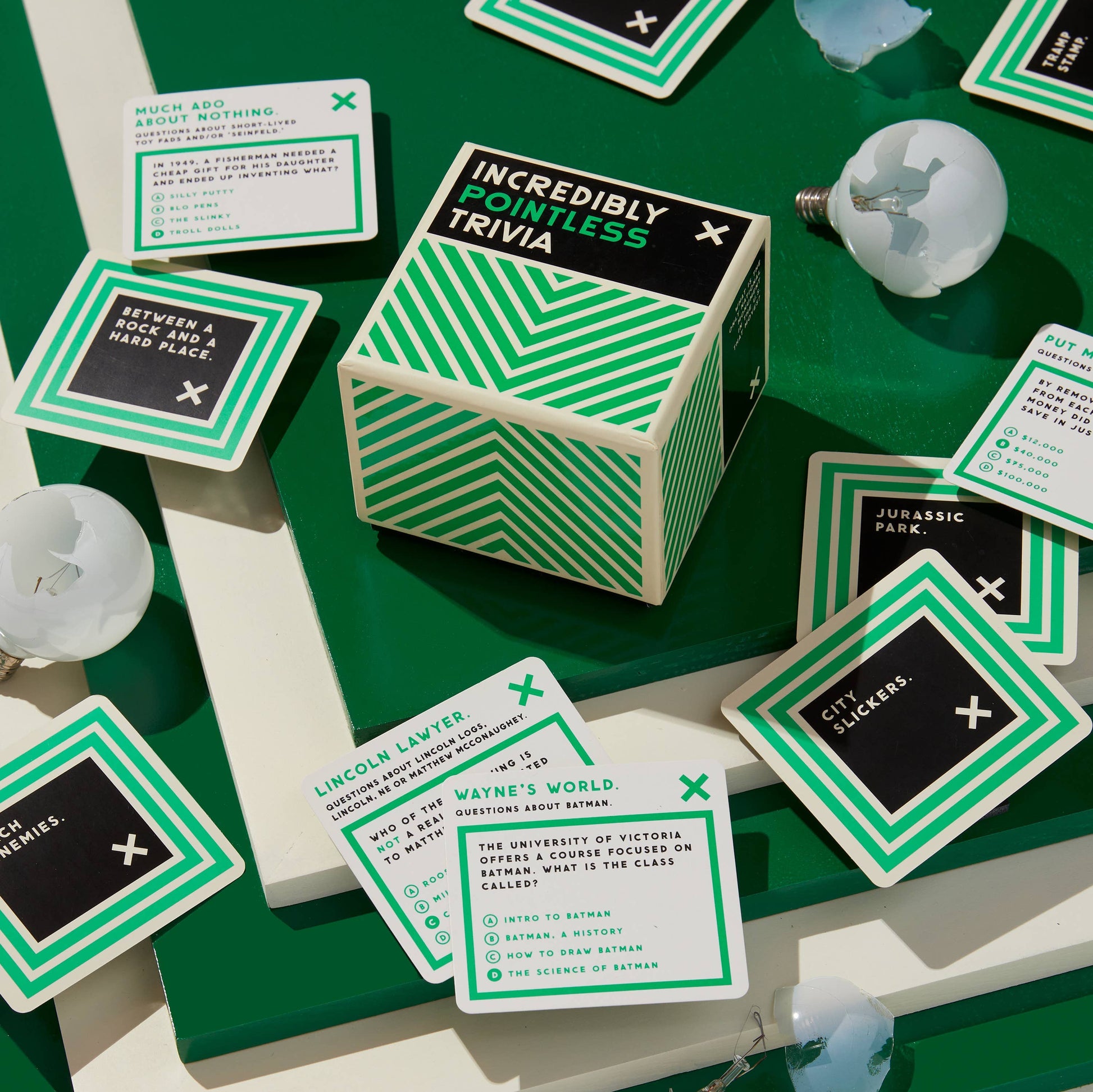 • Each of our trivia collections contains entirely different questions (and categories). Collect them all to build the world’s most useless trivia library.