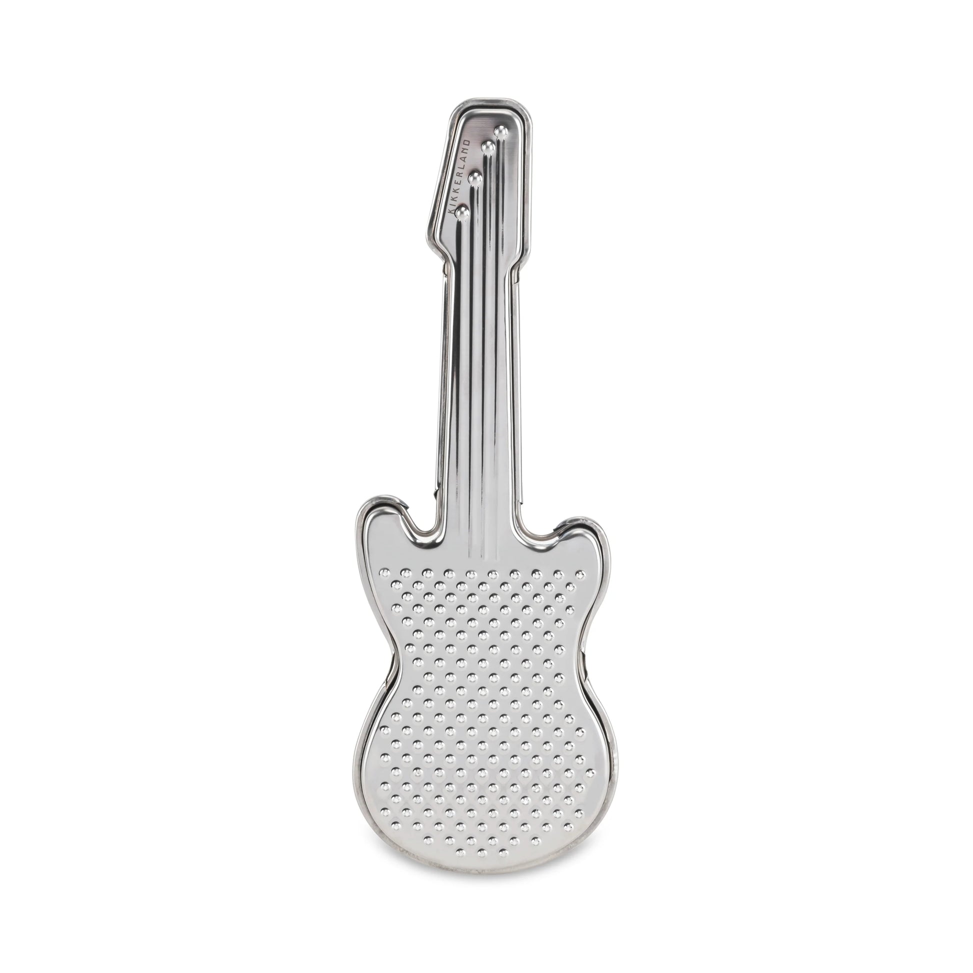 Are you the big cheese in your rock band? Put your air guitar and face melting skills to good use with this shredder for your parmesan. Perfect for the musician who loves to cook. Use it for fine grating of hard cheeses, citrus, spices, garlic, ginger, and more. Stainless Steel. Dishwasher Safe.