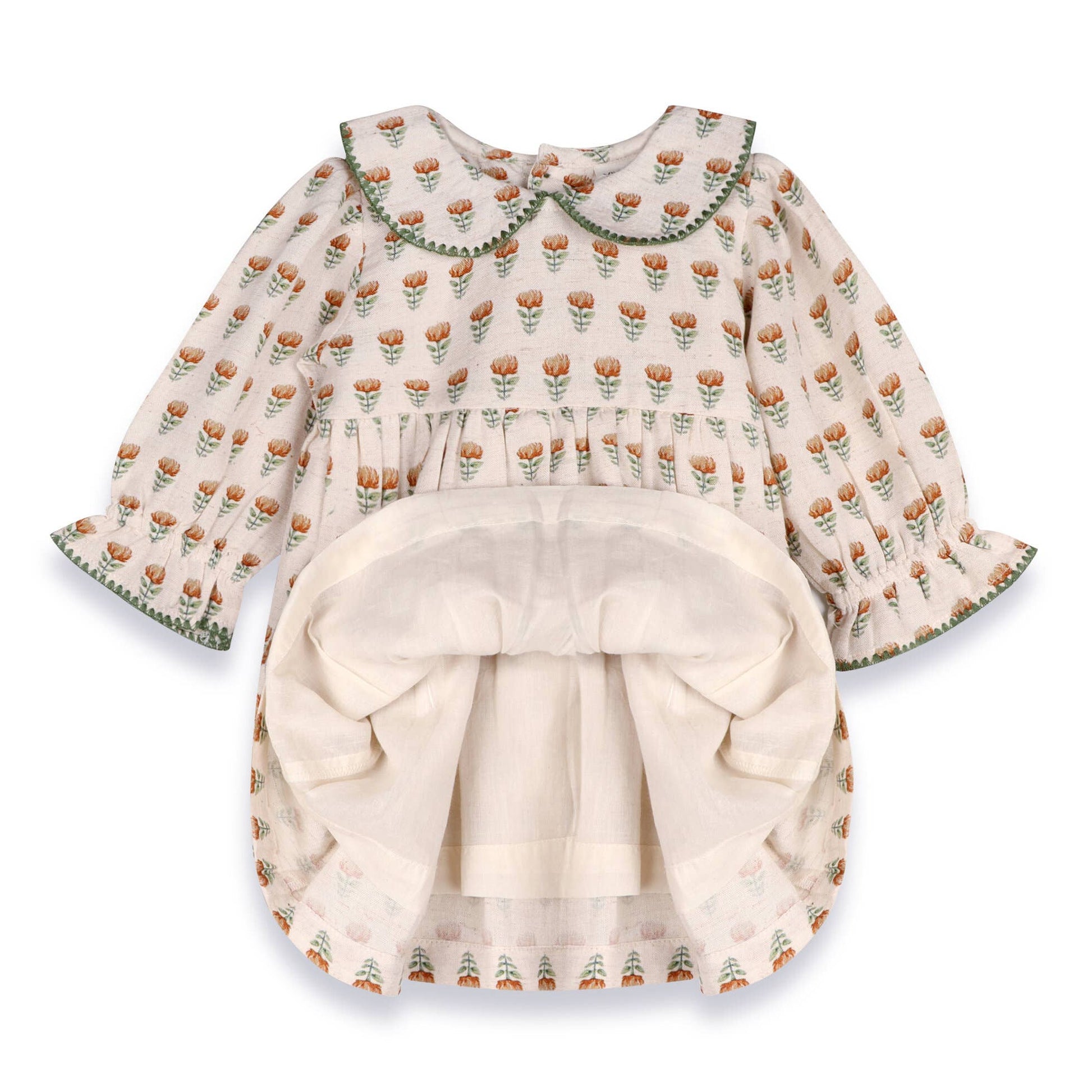 Ina Block Print Floral Baby Dress & Bloomer Set (Linen)
