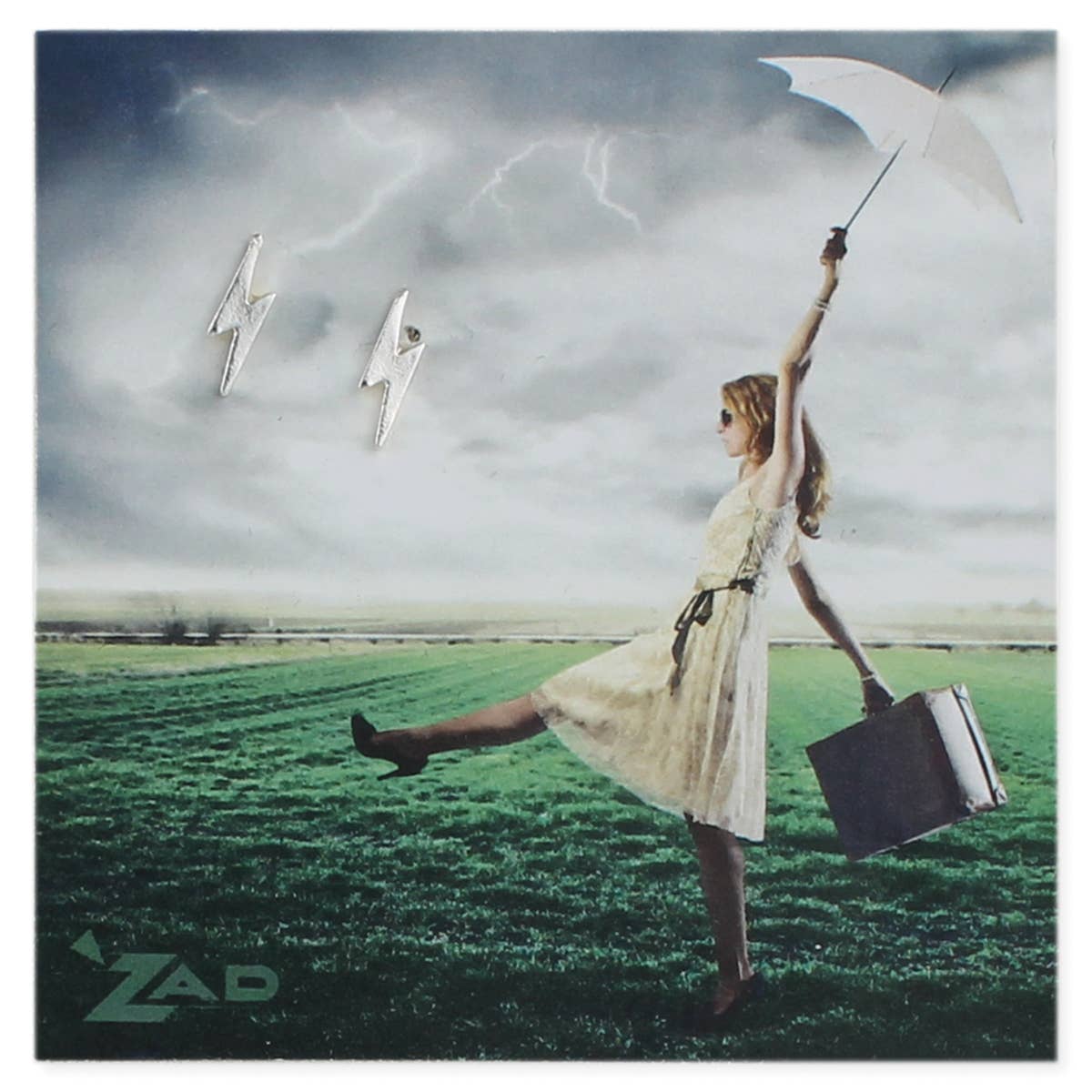 Electrify your style with these Silver Lightning Bolt Post Earrings! Sleek and striking, these celestial earrings add a bold, energetic vibe to any look. Perfect for those who love a little edge in their jewelry, these lightning bolts are your go-to for a fun and fashionable statement. • Stainless steel post • Carded on cute graphic print card - great for gift giving