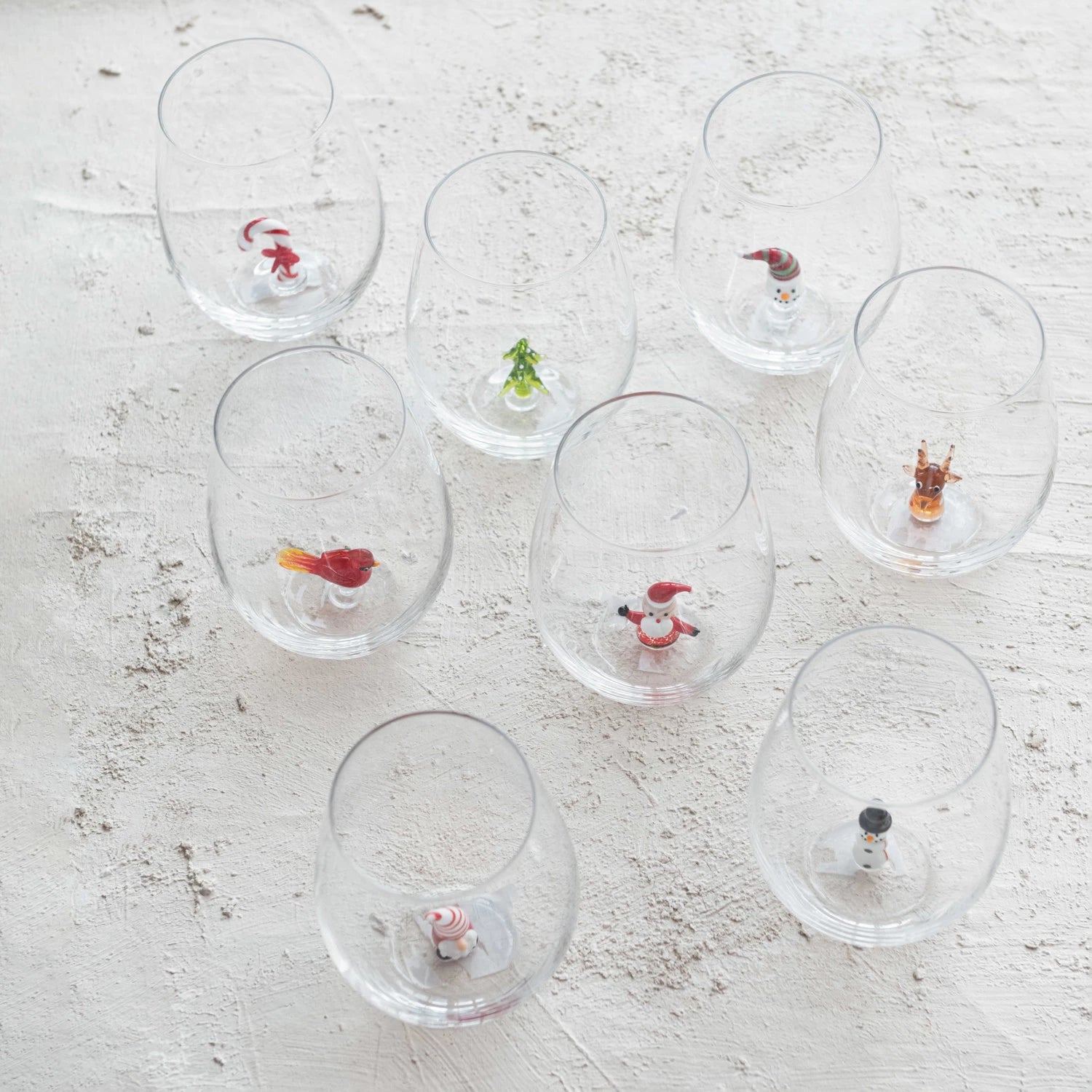 Stemless Wine Glass w/ Holiday Figure Inside, 8 Styles